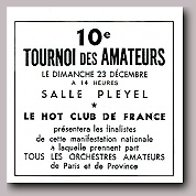 10è TOURNOI DES AMATEURS Dimanche 23 Décembre 1946 à 14 heures SALLE PLEYEL Présenté par le HOT CLUB de FRANCE