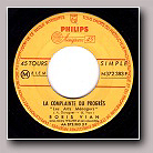 Réédition par INTERSONG PARIS du 45 tours SP PHILIPS N 372.383 F de 1956 avec une pochette différente