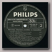 Compilation allemande faisant partie d'un coffret de 12 disques et reprenant les mêmes titres que le 33 tours LP de Boris Vian PHILIPS 836.991-1 soit les 10 titres contenus dans le 25cm Chansons possibles et impossibles auxquels ont été ajoutés Fais moi mal Johnny par Magali Noël et La java martienne par André Popp.