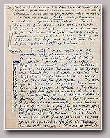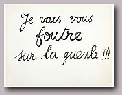 Une des 20 feuilles cartonnées de format 25 x 32 cm portant les sous-titres de Boris Vian calligraphiés à l’encre par Mario Prassinos à la demande de Boris Vian pour son film Isidore Lapalette trouve un client Le tapuscrit du scénario écrit pour Freddie Baume comporte 5 pages.