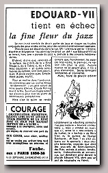 "C'est le 17 Novembre dernier que le Tournoi International des Amateurs organisé par le Hot-Club de Belgique se déroulait à Bruxelles... ...Nous ne voudrions pas minimiser le brillant succès de de l'orchestre français de Claude Abadie qui fut obtenu sans lutte.Il rapporta en même temps que le titre de Champion International, 4 coupes et 1 prix".