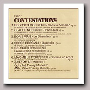 Disque 4 - Face B/2 : Cette face est titrée De la satire à la contestation. Elle contient la version originale de La java des bombes atomiques par Boris Vian précédée de Le temps ne fait rien à l'affaire et suivie par Le gorille toutes deux interprétées par Georges Brassens. Le verso de la pochette contient une chronique sur la poésie et la contestation dans la chanson signée Jean Louis Guitard dans laquelle curieusement Boris Vian et sa composition sont les seuls à ne pas être cités!