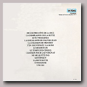- 01 Les joyeux bouchers - 02 Bourrée de complexes (Accomp.Bolling) - 03 La java des bombes atomiques - 04 On n'est pas là... - 05 On n'est pas là...(version Bolling) - 06 Je bois (Accomp.Bolling) - 07 J'suis snob - 08 Le déserteur - 09 La complainte du progrès - 10 Cinématographe - 11 Le petit commerce