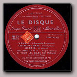 Discographie 45 t. EP dont le R.G.M 10.120 contenant Le gars de Rochechouart Discographie LD 33 t.25cm