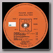 Il existe un 45 tours SP ref : RGM S1127 contenant les 2 chansons de Boris mais surout un 45 tours,introuvable, contenant les mêmes 4 titres sous le label Vendôme ref VEN 5206.