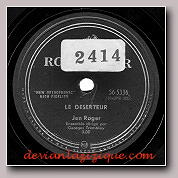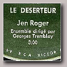 Jen Roger, de son vrai nom Roger Marcotte, est né a Montreal le jour de la St Jean 1928. D'où son nom...Johnny Rogers, pseudo qu'il adoptera en 1949 pour son premier engagement dans un cabaret. Le succès aidant il s'essaiera à la radio puis à la télévision tout en continuant ses tours de chant dans les cabarets. En 1957 il enregistre pour RCA Victor Le déserteur couplé à J'ai gagné (78 tours RCA 57-5336) que nous retrouvons sur ce 45 tours SP au même couplage.